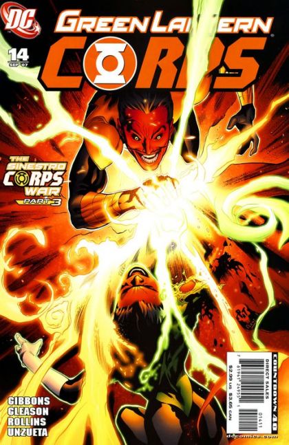 The Sinestro Corps continue their attack against the Green Lanterns, killing many of them.On Korugar, Soranik Natu attempts to convince the Korugarans that she is not their leader and tries to instill peace though they are deaf to her pleas. During an impromptu parade, Sinestro returns to his home planet. Natu attempts to arrest him but is attacked.In space, Green Man searches for Stel whom he believes he killed while under the control of Despotellis (issue #11) and is over joyed to find the remains of the android still functioning. With them in tow, he heads to Mogo.On Korugar, Sinestro and Natu battle and, high above the planet, Natu is defeated. Rather than kill her, Sinestro returns her to the surface, allowing the Korugarans to believe she defeated him. In this way, she is forced to be perceived as the savior of the planet, exactly what she fought against.The Green Lantern Corp mass and leave Oa for the Antimatter universe and Qward; before they leave, Salaak tells Arisia to watch Sodam Yat, who - unknown to Yat - was prophesied to be the greatest Lantern of all.As Green Man and Stel arrive at Mogo, so too does Ranx, the Sentient City.