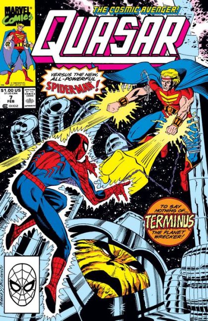 Quasar encounters the cosmically empowered Spider-Man, and recruits his help to stop Terminus.