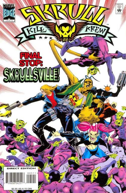 The Skrull Kill Krew mow their way through town, slaughtering the Skrulls before moving on.