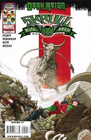 Written by ADAM FELBER Penciled by MARK ROBINSON Cover by MARIO ALBERTI Cow Variant by TOP COW It's just a bloody mess as the ridiculously over-the-top Krew of Skrull Killers finally confronts an enemy that may be too much for them to handle. The cover has a cow with a gun mouth?and that's nowhere NEAR the weirdest thing in the issue. 32 PGS./Rated T+ ...$3.99