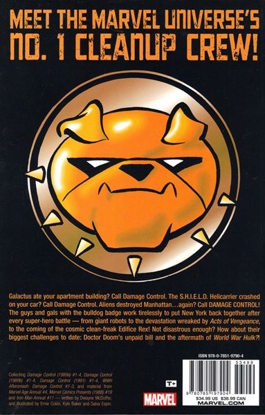 Galactus ate your apartment building? Call Damage Control. The S.H.I.E.L.D. Helicarrier crashed on your car? Call Damage Control. Aliens destroyed Manhattanagain? Call DAMAGE CONTROL! Meet the Marvel Universe's No. 1 clean-up crew, the guys and gals with the bulldog badge who work tirelessly to put New York back together after every super-hero battle - from giant robots, to the devastation wreaked by the Acts of Vengeance, to the coming of the cosmic clean-freak Edifice Rex! Not disastrous enough? How about their biggest challenges to date: Dr. Doom's unpaid bill and the aftermath of World War Hulk! Collecting DAMAGE CONTROL (1989A) #1-4, DAMAGE CONTROL (1989B) #1-4, DAMAGE CONTROL (1991) #1-4, WWH AFTERSMASH: DAMAGE CONTROL #1-3, and material from MARVEL AGE ANNUAL #4 and MARVEL COMICS PRESENTS (1988) #19. Rated T+