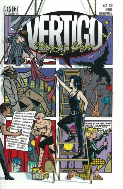 "The Minx" by Peter Milligan, Sean Phillips, and Kent Williams. "Transmetropolitan" by Neil Gaiman and Jeff Jones. "Sandman Mystery Theatre" by Steven T. Seagle and Paul Rivoche. "Books of Magic" by Peter Gross and Jason Lutes. "Scene of the Crime" by Ed Brubaker and Michael Lark. "The Invisbles: Paper Dolls" by Grant Morrison, Phil Jimenez, and Kevin Nowlan. "Nevada" by Steve Gerber and Phil Winslade. "The Dreaming" by Caitlan R. Kiernan and Teddy Kristiansen. "Hellblazer" by Garth Ennis and Glynn Dillon. Cover by Mike and Laura Allred. Edgy Winter by Warren Ellis and Darick Robertson Cover price $6.95.
