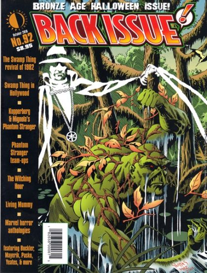 Our Bronze Age Halloween Issue covering: The Swamp Thing revival of 1982, Swamp Thing in Hollywood, Phantom Stranger team-ups, Paul Kupperberg And Mike Mignola's Phantom Stranger miniseries, DC's The Witching Hour, and Marvel's Monster That Didn't Make the Big Time - the Living Mummy. Plus: an issue-by-issue index of Marvel's 1970s' horror anthologies! Featuring the work of Rich Buckler, Andy Mangels, Val Mayerik, Martin Pasko, Michael Uslan, Thomas Yeates, and many more. Cover-featuring Yeates' 2001 recreation of his 1982 cover for Saga of the Swamp Thing #14!