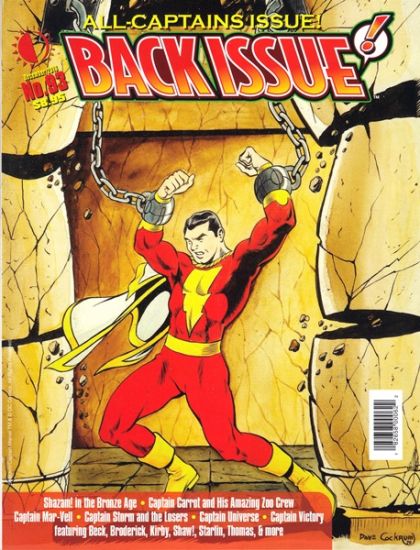 "All-Captains Issue!" Bronze Age histories of Shazam! (Captain Marvel) and Captain Mar-Vell, Captain Carrot, Captain Storm and the Losers, Captain Universe, and Captain Victory and the Galactic Rangers. Featuring C. C. Beck, Pat Broderick, Jack Kirby, Elliot S. Maggin, Bill Mantlo, Don Newton, Bob Oksner, Scott Shaw!, Jim Starlin, Roy Thomas, and more. Cover painting by Dave Cockrum!