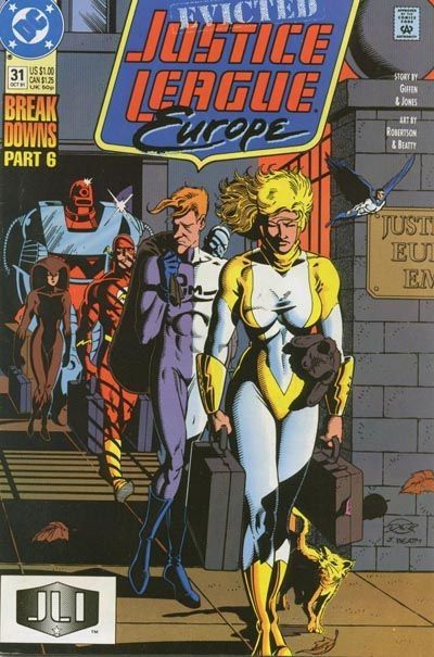War of the Gods: Part 14 (NOT Bannered on the Cover) - Breakdowns Part 6 - continued from Justice League America (1987) #55. The JLI battles the Norse gods Thor, Baldur and Loki, who turn them into trees. Don't you just hate it when that happens?! Continued in Justice League America (1987) #56. Written by Keith Giffen and Gerard Jones, with art and cover by Darick Robertson and John Beatty. Cover price $1.00.