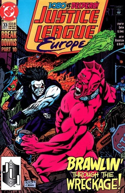 Breakdowns Part 10, continued from Justice League America (1987) #57. Ready for this? It's Guy Gardner vs. Despero vs. JLI vs. Lobo vs. Despero in a city-wrecking smash-up...and the JLI doesn't fare at all well. Continued in Justice League America (1987) #58. Written by Keith Giffen and Gerard Jones, with art and cover by Darick Robertson and John Beatty. Includes a full 16-page Sonic the Hedgehog advertisement comic printed inside. The comic has the exact same story content as found in the original 1991 mini comic (Sonic's 1st appearance in comic books) released as a promotional item in issues of Disney Adventures and Mean Machines Magazines. NOTE: The advertisement may also have been given out separately with pre-orders for the Sega console. Cover price $1.00.