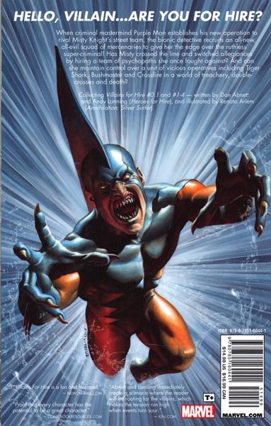 All-new, all-evil team! If the story starts with bionic detective Misty Knight uniting heroes Black Panther, Paladin and Silver Sable to halt a heist, why does she then cross the line and hire those she once fought - including psychopaths like Tiger Shark and Speed Demon? Because the Purple Man is out to build a criminal empire with an army including Avalanche, Shocker and the new Scourge! Enter a world of treachery, double-crosses and death when you hear: 'Hello, villain?are you for hire?' Collecting VILLAINS FOR HIRE #0.1 and #1-4.