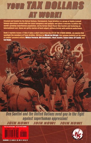 Written by Micah Ian Wright; art by Whilce Portacio, Mark Texeira, Tomm Coker, CP Smith, Sal Regla, and Bill Sienkiewicz; cover by Portacio EYE OF THE STORM. In stores December 24. Collecting issues #7-11 of the acclaimed series - five short stories that spotlight the members of Team Achilles. Created and funded by the United Nations, Stormwatch: Team Achilles is a group of highly trained human operatives armed with the latest weaponry and gadgets and given a mission: to police the world's growing superhuman population. Led by former Black Razor, Ben Santini and featuring an international cast, these are gritty stories of hard-edged, military fiction with political undertones. For more information, see the feature article. MATURE READERS SC, 7x10, 128 pg, FC