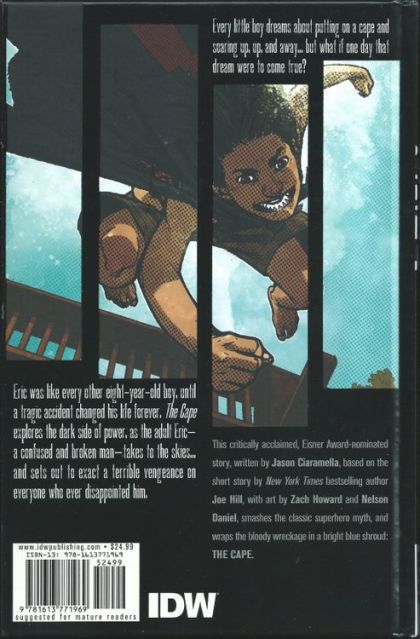 Every little boy dreams about putting on a cape and soaring up, up, and away... but what if one day that dream were to come true? Eric was like every other eight-year-old boy, until a tragic accident changed his life forever. The Cape explores the dark side of power, as the adult Eric - a confused and broken man - takes to the skies... and sets out to exact a terrible vengeance on everyone who ever disappointed him. This critically acclaimed, Eisner-Award nominated story, written by Jason Ciaramella, based on the short story by New York Times bestselling author Joe Hill, with art by Zach Howard and Nelson Daniel, will linger with you long after you turn the last page, and force you to ask yourself the question: 'What if?'