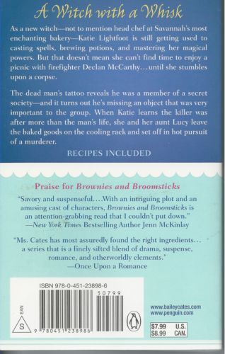 As a new witch--not to mention head chef at Savannah's most enchanting bakery--Katie Lightfoot is still getting used to casting spells, brewing potions, and mastering her magical powers. But that doesn't mean she can't find time to enjoy a picnic with firefighter Declan McCarthy...until she stumbles upon a corpse. The dead man's tattoo reveals he was a member of a secret society--and it turns out he's missing an object that was very important to the group. WHen Katie learns the killer was after more than the man's life, she and her aunt Lucy leave the baked goods on the cooling rack and set off in hot pursuit of a muderer.