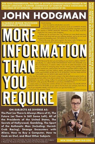 The bestselling author of The Areas of My Expertise— also known as The Daily Show’s “Resident Expert” and the PC in the iconic Mac ads—picks up exactly where his first book left off. Exactly.Like its predecessor, MORE INFORMATION THAN YOU REQUIREcompiles incredibly handy made up facts into brief articles, overlong lists, frighteningly complex charts, and beguiling narratives on new and familiar themes such as:THE PAST (because there is always more)THE FUTURE (because they say there is still some left to discuss)THE METHOD BY WHICH WE “ELECT” OUR PRESIDENTS (as this will be happening soon)THE STRANGE OKAPI (an actual animal) GAMBLING: THE SPORT OF THE ASTHMATIC MAN (includes hermit crab racing)HOW TO BE A FAMOUS MINOR TELEVISION PERSONALITY (hint: go on television)PLUS: 700 MOLE-MAN NAMES (and their occupations)Yes. HODGMAN MAY HAVE BEEN BRIEFLY ABSENT FROM YOUR LIFE, but with this volume he is ready to pick up exactly where THE AREAS OF MY EXPERTISEleft off—specifically AT PAGE 237.