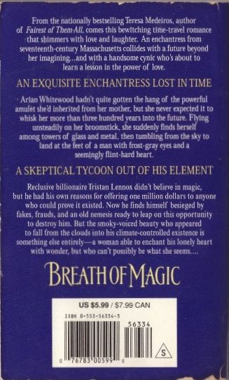 From the nationally bestselling author of Fairest of Them All comes this bewitching time-travel romance that shimmers with love and laughter. An enchantress from seventeenth-century Massachusetts collides with a future beyond her imagining . . . and with a handsome cynic who’s about to learn a lesson in the power of love. Arian Whitewood hadn’t quite gotten the hang of the powerful amulet she’d inherited from her mother, but she never expected it to whisk her more than three hundred years into the future. Flying unsteadily on her broomstick, she suddenly finds herself among towers of glass and metal, then tumbling from the sky to land at the feet of a man with frost-gray eyes and a seemingly flint-hard heart. Reclusive billionaire Tristan Lennox didn’t believe in magic, but he had his own reasons for offering one million dollars to anyone who could prove it existed. Now he finds himself besieged by fakes, frauds, and an old nemesis ready to leap on this opportunity to destroy him. But the smoky-voiced beauty who appeared to fall from the clouds into his climate-controlled existence is something else entirely—a woman able to enchant his lonely heart with wonder, but who can’t possibly be what she seems.
