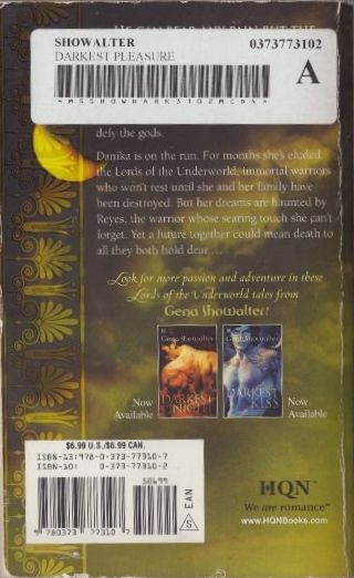 Reyes is a man possessed. Bound by the demon of pain, he is forbidden to know pleasure.Yet he craves a mortal woman, Danika Ford, more than breath and will do anything to claimher--even defy the gods. Danika is on the run. For months she's eluded the Lords of the Underworld, immortalwarriors who won't rest until she and her family have been destroyed. But her dreams arehaunted by Reyes, the warrior whose searing touch she can't forget. Yet a future togethercould mean death to all they both hold dear.... And be sure to check out the latest book in the irresistibly seductive Lords of theUnderworld series, The Darkest Torment, featuring the fierce warrior Baden whowill stop at nothing to claim the exquisite human with the power to soothe the beastinside him... Previously published.