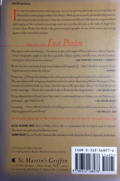 From the Publisher: In this best-selling biography, French and Argentine journalist Alicia Dujovne Ortiz examines the mythology that surrounds Eva Peron as she penetrates the complexities behind Peron's ever-lasting allure. Born in 1919, the illegitimate daughter of destitute Argentine farmers, Eva Duarte spent her adolescence aspiring to the grand and glorious fame of the theater. At the first opportunity, she fled the deprivation of her origins and the backwaters of her poor village for the glittering lights of Buenos Aires. However, because she lacked both formal training and talent to be an actress, Eva quickly realized that it would take many years of hardship for even a small chance at becoming the star of her generation. It was during this time of disillusion that Eva met Juan Peron. Abandoning her pursuit of stardom, Eva concentrated all of her efforts on helping the future dictator of Argentina ascend politically. Her theatrical ambition was substituted with the desire not only to launch her husband's career, but to remake herself as a figure of providence for the millions of impoverished workers of her country. With access to the newly declassified archives of the Peron government, Ortiz has uncovered new information, including connections between Juan Peron and the German Nazi party. Taking into account every source of information-many never available to any other previous biographer-Ortiz has tapped into dozens of personal testimonies, including that of Father Hernan Benitez, Eva's personal confessor, as well as Eva's own private memoirs.