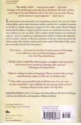 #1 NEW YORK TIMES BESTSELLER • ONE OF ESSENCE’S 50 MOST IMPACTFUL BLACK BOOKS OF THE PAST 50 YEARSIn this iconic memoir of his early days, Barack Obama “guides us straight to the intersection of the most serious questions of identity, class, and race” (The Washington Post Book World). “Quite extraordinary.”—Toni Morrison In this lyrical, unsentimental, and compelling memoir, the son of a black African father and a white American mother searches for a workable meaning to his life as a black American. It begins in New York, where Barack Obama learns that his father—a figure he knows more as a myth than as a man—has been killed in a car accident. This sudden death inspires an emotional odyssey—first to a small town in Kansas, from which he retraces the migration of his mother’s family to Hawaii, and then to Kenya, where he meets the African side of his family, confronts the bitter truth of his father’s life, and at last reconciles his divided inheritance. Praise for Dreams from My Father “Beautifully crafted . . . moving and candid . . . This book belongs on the shelf beside works like James McBride’s The Color of Water and Gregory Howard Williams’s Life on the Color Line as a tale of living astride America’s racial categories.”—Scott Turow “Provocative . . . Persuasively describes the phenomenon of belonging to two different worlds, and thus belonging to neither.”—The New York Times Book Review “Obama’s writing is incisive yet forgiving. This is a book worth savoring.”—Alex Kotlowitz, author of There Are No Children Here “One of the most powerful books of self-discovery I’ve ever read, all the more so for its illuminating insights into the problems not only of race, class, and color, but of culture and ethnicity. It is also beautifully written, skillfully layered, and paced like a good novel.”—Charlayne Hunter-Gault, author of In My Place “Dreams from My Father is an exquisite, sensitive study of this wonderful young author’s journey into adulthood, his search for community and his place in it, his quest for an understanding of his roots, and his discovery of the poetry of human life. Perceptive and wise, this book will tell you something about yourself whether you are black or white.”—Marian Wright Edelman