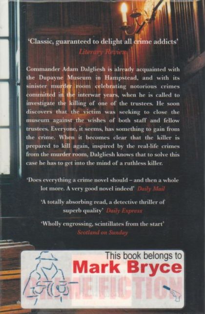Murders present meet murders past in P.D. James’s latest harrowing, thought-provoking thriller. Commander Adam Dalgliesh is already acquainted with the Dupayne--a museum dedicated to the interwar years, with a room celebrating the most notorious murders of that time--when he is called to investigate the killing of one of the family trustees. He soon discovers that the victim was seeking to close the museum against the wishes of the fellow trustees and the Dupayne's devoted staff. Everyone, it seems, has something to gain from the crime. When it becomes clear that the murderer has been inspired by the real-life crimes from the murder room--and is preparing to kill again--Dalgliesh knows that to solve this case he has to get into the mind of a ruthless killer.