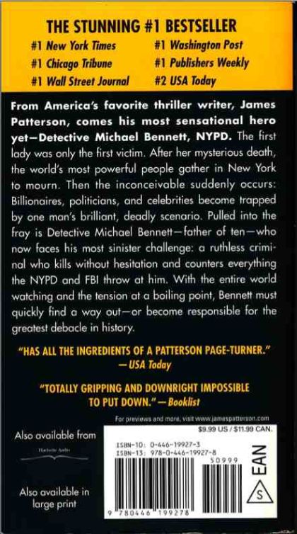 During a state funeral for a beloved former First Lady in New York City's largest cathedral, the unthinkable occurs. Armed men disguised as monks seize the church and seal themselves inside, along with more than one hundred of the most powerful people in America. The captives include world leaders, actors, TV stars, athletes, and politicians, and the kidnappers are armed with enough C4 explosives to blow a crater in the middle of Manhattan. NYPD officer Michael Bennett is pulled into the standoff as lead negotiator. Despite the escalating danger, Michael faces an even more terrifying crisis at home. His wife has been diagnosed with a devastating disease, and Michael faces the prospect of losing the love of his life and having to raise their ten children alone. With his own life teetering and the lives of thousands suddenly his responsibility, Michael struggles to diffuse the tense situation fast. Yet the kidnappers' moves are impossible to predict, and they block every attempt to break into the cathedralmost as if they are privy to their deliberations.
