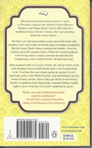 For their very first guest author event, most of the book club members can't wait to pull out all the stops in Southern hospitality. But for Lizzie, Derek Alton is nothing but trouble--from his massive ego to his smarmy moves. When he's found murdered in her living room, it seems someone decided that this womanizing writer would be better off dead than read. After suspicion falls on Lizzie's friend, she and her fellow book club members discover that Derek wasn't who he pretended to be. Cracking this case means going up against Lizzie's boy friend, police chief Mark Dreyfus. and unearthing a novel's worth of nasty secrets. And as they get closer to uncovering Derek's scandalous final manuscript, someone hiding in plain sight is out to write finis to Lizzie's sleuthing for good.