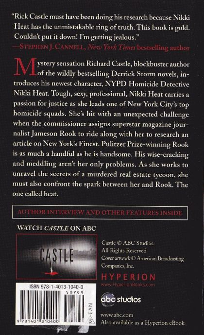 In this novel, tough, sexy and professional Nikki Heat carries a passion for justice as she leads one of New York City's top homicide squads. She's hit with an unexpected challenge when the commissioner assigns a superstar reporter, Jameson Rook, to ride along with her to research an article on New York City's finest. A New York real estate tycoon plunges to his death on a Manhattan sidewalk. A trophy wife with a past survives a narrow escape from a brazen attack. Mobsters and moguls with no shortage of reasons to kill trot out their alibis. And then, in the suffocating grip of a record heat wave, comes another shocking murder and a sharp turn in a tense journey into the dirty little secrets of the wealthy.