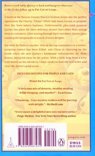 Butterscotch tabby Quincy is back and hungrier than ever in this frisky follow-up to Fat Cat at Large… A booth at the Bunyan County Harvest Fair seems like the perfect opportunity for Charity “Chase” Oliver and Anna Larson to promote their Bar None bakery business. Unfortunately, plus-sized pussycat Quincy has plans for their delicious dessert bars other than selling them to customers. After tearing through their inventory, Quincy goes roaming the fairgrounds in search of more delights. But what he finds is murder. One of the top contenders in a butter-sculpting contest has been killed, and Chase is churning on the inside when she sees Quincy’s handsome veterinarian, Dr. Mike Ramos, being led away by the police. With a little help from a kitty with butter on his whiskers, Chase needs to find the real killer and clear the doctor’s good name… Includes recipes for people and cats!