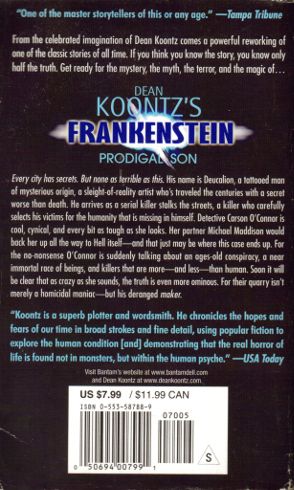His name is Deucalion, a tattooed man of mysterious origin, a sleight-of-reality artist whos traveled the centuries with a secret worse than death. He arrives as a serial killer stalks the streets, a killer who carefully selects his victims for the humanity that is missing in himself. Detective Carson O'Connor is cool, cynical, and every bit as tough as she looks. Her partner Michael Maddison would back her up all the way to Hell itself and that just may be where this case ends up. For the no-nonsense O'Connor is suddenly talking about an ages-old conspiracy, a near immortal race of beings, and killers that are more and less than human. Soon it will be clear that as crazy as she sounds, the truth is even more ominous. For their quarry isnt merely a homicidal maniac but his deranged maker.
