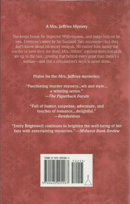 It's the week before Christmas, but the festive mood in Inspector Gerald Witherspoon's household fizzles when he's called to Richmond to investigate the murder of a baronet . . . All is not calm. Sir George Braxton was found lying face down in a frozen fountain with the back of his skull bashed to bits. The case is complicated by a distinct lack of holiday cheer in the victim's three argumentative middle-aged daughters and their sullen houseguests. Even the cranky cat hates everyone. To top it all off, the Home Secretary has called in Inspector Witherspoon over the heads of some touchy local lads, making matters stickier than a plum pudding. Only the help of his housekeeper Mrs. Jeffries and her crime-solving staff will give the poor Inspector any chance of sleeping in heavenly peace on Christmas Eve . . .