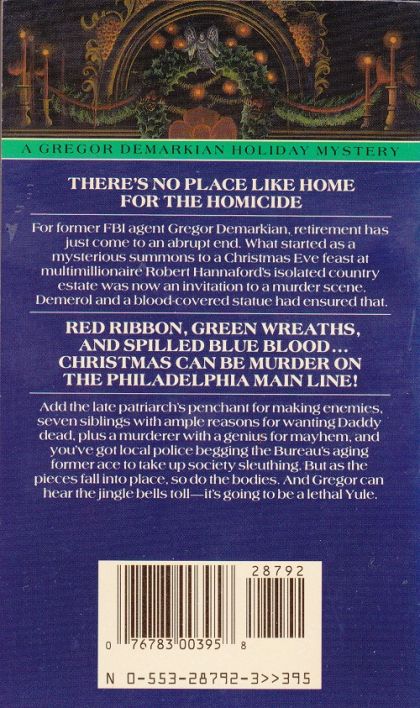 For former FBI agent Gregor Demarkian, retirement has just come to an abrupt end. What started as a mysterious summons to a Christmas Eve feast at multimillionaire Robert Hannaford's isolated country estate was now an invitation to a murder scene. Demerol and a blood-covered statue had ensured that . ... Add the late patriarch's penchant for making enemies, seven siblings with ample reasons for wanting Daddy dead, plus a murderer with a genius for mayhem, and you've got local police begging the Bureau's aging former ace to take up society sleuthing. But as the pieces fall into place, so do the bodies. And Gregor can hear the jingle bells toll--it's going to be a lethal Yule. -- Back cover.