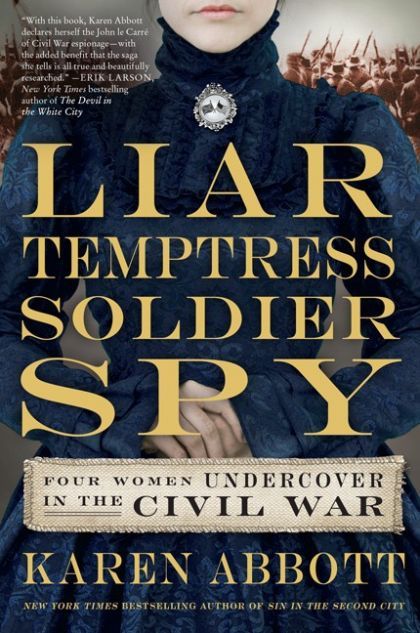 Women are conspicuously absent in most Civil War chronicles. With a few notable exceptions—Clara Barton, Harriet Tubman, Mary Todd Lincoln—female figures largely appear in the literature as bit players, if they make an appearance at all. Author Karen Abbott seeks a welcome redress to this neglect with Liar Temptress Soldier Spy: Four Women Undercover in the Civil War, an exciting and extremely well-written, if deeply flawed account of some ladies who made a significant contribution to the war effort, north and south.