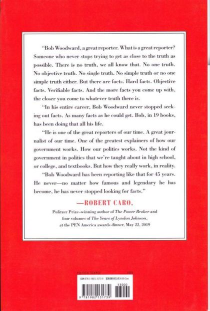 Woodward, the #1 international bestselling author of Fear: Trump in the White House, has uncovered the precise moment the president was warned that the Covid-19 epidemic would be the biggest national security threat to his presidency. In dramatic detail, Woodward takes readers into the Oval Office as Trump’s head pops up when he is told in January 2020 that the pandemic could reach the scale of the 1918 Spanish Flu that killed 675,000 Americans.