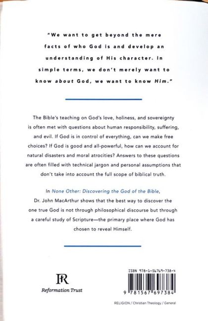The Bible's teaching on God's love, holiness, and sovereignty is often met with questions about human responsibility, suffering, and evil. If God is in control of everything, can we make free choices? If God is good and all-powerful, how can we account for natural disasters and moral atrocities? Answers to these questions are often filled with technical jargon and personal assumptions that don't take into account the full scope of biblical truth. In None Other: Discovering the God of the Bible, Dr. John MacArthur shows that the best way to discover the one true God is not through philosophical discourse but a careful study of Scripture--the primary place where God has chosen to reveal Himself.