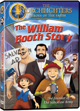 “Introduce children to the action-packed story behind the Salvation Army and its founder William Booth. The pub owners and their hired thugs are ready for William and his ragtag followers when they come marching into London’s East End. With clubs and rocks, the thugs are set to chase this preacher out of town once and for all. But William and his “Salvation Army” are not so easily dissuaded! Armed only with Bibles, musical instruments and their unflinching faith in God, they march in to face their most dangerous opponents so far. Who will win the spiritual battle for the hurting souls of this forgotten corner of London?”