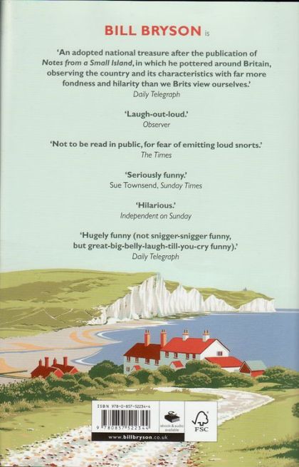 Twenty years ago, Bill Bryson went on a trip around Britain to celebrate the green and kindly island that had become his adopted country. The hilarious book that resulted, Notes from a Small Island, was taken to the nationâe(tm)s heart and became the bestselling travel book ever, and was also voted in a BBC poll the book that best represents Britain.Now, to mark the twentieth anniversary of that modern classic, Bryson makes a brand-new journey round Britain to see what has changed. Following (but not too closely) a route he dubs the Bryson Line, from Bognor Regis to Cape Wrath, by way of places that many people never get to at all, Bryson sets out to rediscover the wondrously beautiful, magnificently eccentric, endearingly unique country that he thought he knew but doesnâe(tm)t altogether recognize any more. Yet, despite Britainâe(tm)s occasional failings and more or less eternal bewilderments, Bill Bryson is still pleased to call our rainy island home. And not just because of the cream teas, a noble history, and an extra day off at Christmas. Once again, with his matchless homing instinct for the funniest and quirkiest, his unerring eye for the idiotic, the endearing, the ridiculous and the scandalous, Bryson gives us an acute and perceptive insight into all that is best and worst about Britain today.