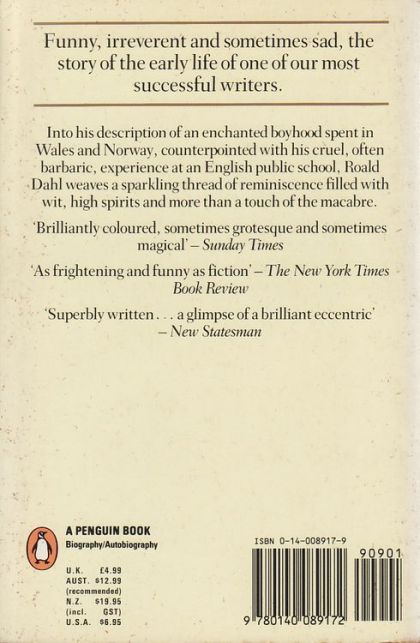 'An autobiographby is a book a person writes about his own life and it is usually full of all sorts of boring details. This is not an autobiography. I would never write a history of myself. On the other hand, throughout my young days at school and just afterwards a number of things happened to me that I have never forgotten.' BOY is a funny, insightful and at times macabre glimpse into the early life of Roald Dahl, one of the world's favourite authors. We discover his experiences of the English public school system, the idyllic paradise of summer holidays in Norway, the pleasures (and pains) of the sweetshop, and how it is that he avoided being a Boazer. This is the unadulterated childhood - sad and funny, sinister and delightful - thbat inspiered the much-loved children's writer.