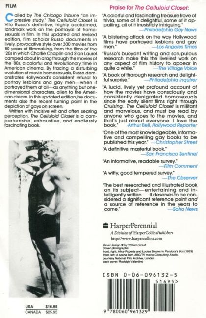 When Vito Russo published the first edition of The Celluloid Closet in 1981, there was little question that it was a groundbreaking book. Today it is still one of the most informative and provocative books written about gay people and popular culture. By examining the images of homosexuality and gender variance in Hollywood films from the 1920s to the present, Russo traced a history not only of how gay men and lesbians had been erased or demonized in movies but in all of American culture as well. Chronicling the depictions of gay people such as the "sissy" roles of Edward Everett Horton and Franklin Pangborn in 1930s comedies or predatory lesbians in 1950s dramas (see Lauren Bacall in Young Man with a Horn and Barbara Stanwyck in Walk on the Wild Side), Russo details how homophobic stereotypes have both reflected and perpetrated the oppression of gay people. In the revised edition, published a year before his death in 1990, Russo added information on the new wave of independent and gay-produced films--The Times of Harvey Milk, Desert Hearts, Buddies--that emerged during the 1980s. --Michael Bronski
