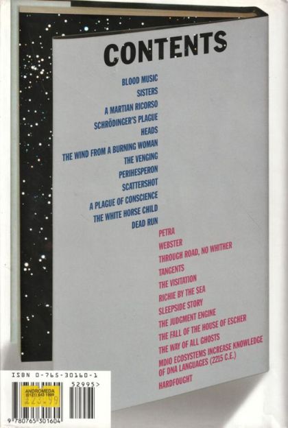 This collection of Greg Bear's major short fiction ably demonstrates why Bear is one of science fiction's most popular authors. The multiple Hugo and Nebula award winner offers here a feast of his most famous stories and novellas, accompanied by thoughtful introductions and afterwords that provide insight into the writer and his process. Standouts include "Blood Music," a precise and chilling tale of human cells that become individually intelligent; "The Wind from a Burning Woman," in which despair and anger inspire a young woman's terrible act of vengeance; "The White Horse Child," a loving look at the nascence of the creative impulse; and "Dead Run," in which the road to hell is paved with concrete, and not all intentions are good. This extensive collection is chock full of good stories told with Bear's characteristic intelligence and flair. While he examines big questions of science, politics and religion, Bear's driving force as a writer is his curiosity about the human spirit. --Roz Genessee