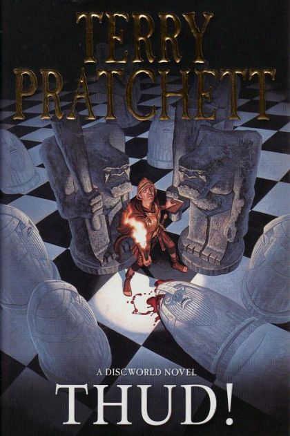 A seemingly routine day in the life of City Watch commander Sam Vimes is abruptly interrupted by an unsolved murder, an impending war, an unwanted new recruit, and a pesky government inspector. By the author of Going Postal. It's a game of Trolls and Dwarfs where the player must take both sides to win. It's the noise a troll club makes when crushing in a dwarf skull, or when a dwarfish axe cleaves a trollish cranium. It's the unsettling sound of history about to repeat itself. THUD! It's the most extraordinary, outrageous, provocative, insightful, and keenly cutting flight of fancy yet from Discworld's incomparable supreme creator, Terry Pratchett. Commander Sam Vimes of the Ankh-Morpork City Watch admits he may not be the sharpest knife in the cutlery drawer. He might not even be a spoon. But he's dogged and honest and he'll be damned if he lets anyone disturb his city's always tentative peace, and that includes a rabble-rousing dwarf from the sticks (or deep beneath them) who's been stirring up big trouble on the eve of the anniversary of one of Discworld's most infamous historical events. Centuries earlier, in a gods-forsaken hellhole called Koom Valley, a horde of trolls met a division of dwarfs in bloody combat. Though nobody's quite sure why they fought or who actually won, hundreds of years on each species still bears the cultural scars, and one views the other with simmering animosity and distrust. Lately, an influential dwarf, Grag Hamcrusher, has been fomenting unrest among Ankh-Morpork's more diminutive citizens with incendiary speeches. And it doesn't help matters when the pint-size provocateur is discovered beaten to death, with a troll club lying conveniently nearby. Vimes knows the well-being of his smoldering city depends on his ability to solve the Hamcrusher homicide without delay. (Vimes's secondmost-pressing responsibility, in fact, next to being home every evening at six sharp to read Where's My Cow? to Young Sam.) Whatever it takes to unstick this very sticky situation, Vimes will do it, even tolerating having a vampire in the Watch. But there's more than one corpse waiting for him in the eerie, summoning darkness of the vast, labyrinthine mine network the dwarfs have been excavating in secret beneath Ankh-Morpork's streets. A deadly puzzle is pulling Sam Vimes deep into the muck and mire of superstition, hatred, and fear, and perhaps all the way to Koom Valley itself.