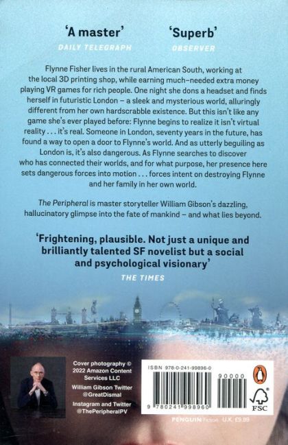 Discover the cult classic behind the major new TV adaption from the creators of Westworld, starring Chloe Grace Moretz. ----- 'Big-screen, popcorn-chewing thrills' Guardian Flynne Fisher lives in the rural American South, working at the local 3D printing shop, while earning much needed extra money playing VR games for rich people. One night she dons a headset and finds herself in futuristic London-a sleek and mysterious world, alluringly different from her own hardscrabble existence. But this isn't like any game she's ever played before: Flynne begins to realize it isn't virtual reality... it's real. Someone in London, seventy years in the future, has found a way to open a door to Flynne's world. And as utterly beguiling as London is... it's also dangerous. As Flynne searches to discover who has connected their worlds, and for what purpose, her presence here sets dangerous forces into motion...forces intent on destroying Flynne and her family in her own world. The Peripheral is master storyteller William Gibson's dazzling, hallucinatory glimpse into the fate of mankind - and what lies beyond. ----- 'Mesmerizing, captivating, haunting' Sunday Times 'Frightening, plausible. Not just a unique and brilliantly talented SF novelist but a social and psychological visionary' The Times 'Frantic with imagination and frantic with the appetite to see what happens next' Observer 'A swirlingly philosophical quantum daydream of drones and bodyswapping' Daily Telegraph, Books of the Year