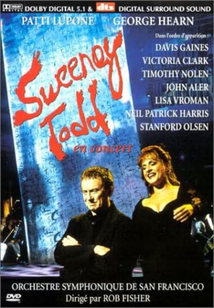 Starring Broadway legends Patti LuPone and George Hearn with the San Francisco Symphony under Rob Fisher. Sondheim's Sweeney is based on playwright Christopher Bond’s stage thriller Sweeney Todd, The Demon Barber of Fleet Street. The music and lyrics for Sweeney are by Stephen Sondheim and the book is by Hugh Wheeler. Adapted by Christopher Bond and originally directed by Harold Prince, the Philharmonic performances of Sweeney was directed by Lonny Price and conducted by Andrew Litton. The New York Choral Artists also participated in the program.
