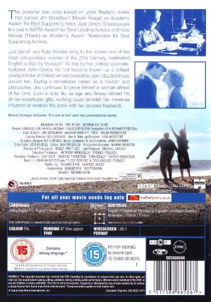 True story of the lifelong romance between novelist Iris Murdoch and her husband John Bayley, from their student days through her battle with Alzheimer's disease.