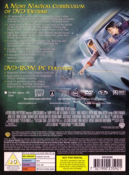 Cars fly, trees fight back, and a mysterious house-elf comes to warn Harry Potter at the start of his second year at Hogwarts. Adventure and danger await when bloody writing on a wall announces: The Chamber Of Secrets Has Been Opened. To save Hogwarts will require all of Harry, Ron and Hermione's magical abilities and courage.