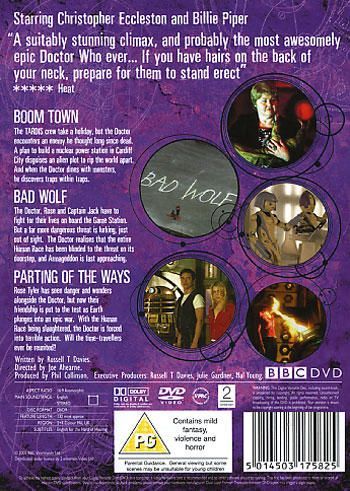 When a spaceship crashes in the middle of the London Blitz the Doctor, Rose and the enigmatic Captain Jack Harkness find themselves investigating a plague of physical injuries and a little boy in a gas mask.