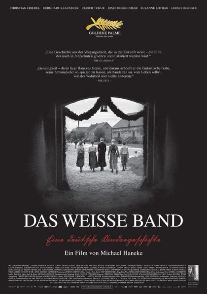 Gegen Ende kündigt die Baronin ihrem Mann an, ihn zu verlassen. Die Hebamme verlässt das Dorf, der Arzt mit seiner Familie ist bereits verschwunden. Nach einer ungewöhnlichen Begegnung des Lehrers mit einer Schar Dorfkinder beginnt dieser die Tatumstände zu hinterfragen. Er spricht mit den Pastorenkindern und äußert gegenüber dem Pastor seine Beobachtung, dass im Vorfeld zu den Taten stets die Dorfkinder zugegen gewesen seien. Der Pastor sieht seine Kinder schweren Verdachtsmomenten ausgesetzt und droht dem Lehrer mit einer Strafanzeige, sollte er seinen Verdacht im Dorf verbreiten. Unklar bleibt angesichts der Anfangsszenen (heftige körperliche Züchtigung, das "weiße Band") und des weiteren Geschehens (u.a. des nicht näher kommentierten "Bekennerschreibens" und des "gekreuzigten" Vogels), inwieweit der Pastor selbst zu entsprechenden Schlüssen gekommen ist, aber aufgrund sozialer Konventionen eine Aufdeckung fürchtet. Der Lehrer schweigt, eine Aufklärung der Geschehnisse erfolgt nicht, die Vorfälle bleiben unaufgeklärt. Der Film endet zum Zeitpunkt des Attentats auf den österreichisch-ungarischen Thronfolger Franz Ferdinand in Sarajevo und der anschließenden Kriegserklärung Österreich-Ungarns an Serbien. Der ehemalige Lehrer berichtet, dass er noch bis zu seinem Kriegsdienst im Dorf geblieben sei, später eine Schneiderwerkstatt in der Stadt eröffnet und keine Kontakte mehr zu den Dorfbewohnern gehabt habe.