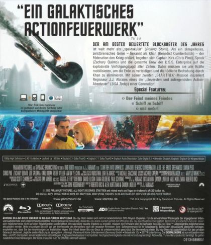 When the crew of the Enterprise is called back home, they find an unstoppable force of terror from within their own organization has detonated the fleet and everything it stands for, leaving our world in a state of crisis. With a personal score to settle, Captain Kirk leads a manhunt to a war-zone world to capture a one man weapon of mass destruction. As our heroes are propelled into an epic chess game of life and death, love will be challenged, friendships will be torn apart, and sacrifices must be made for the only family Kirk has left: his crew.