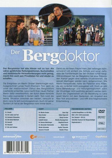 Lena's husband Tom was treated by Dr. Martin Gruber with a medication that hasn't been sufficiently tested yet, which keeps the Bergdoktor from settling down. Despite the medication showing some effect, Tom's condition doesn't improve-in fact, it gets worse. Martin does everything he can to save Tom's life, because Lena's love is also at stake and she blames him. With a thesis he develops, he tries to uncover the cause of Tom's steadily worsening condition. Can Martin help Tom, or will he lose Lena? A sports-event organizer calls Martin for help-one athlete has been injured. Martin is surprised to see his daughter Lilli there, clearly skipping school. Her boyfriend Mario has persuaded her to try "rockrunning." On the injured Lisa Kleinert, the girlfriend of the organizer's son, a rare virus is diagnosed. This virus is transmitted only through sexual contact and is curable only by antibodies formed in the blood. Her boyfriend wasn't the source, but she had an affair. Even though she's putting her life at risk, she doesn't want to name the person she slept with.