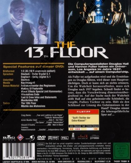 Die Computerspezialisten Douglas Hall und Hannon Fuller haben ein Universum, Los Angeles im Jahre 1937, entwickelt ... auf einem Computerchip.Als Fuller tot aufgefunden wird und die Ermittlungen zu Douglas führen, wird dieser zum Hauptverdächtigen. Doch er kann sich an nichts erinnern. Um die Wahrheit herauszufinden, muss sich Douglas nach 1937 begeben. Schnell findet er heraus, dass die Verschwörung dimensionsübergreifend ist. Auf der Suche nach der Wahrheit stößt Hall auf eine geheimnisvolle Schönheit, die vorgibt, Fullers Tochter zu sein. Hält sie den Schlüssel zur Lösung des Geheimnisses in der Hand? Douglas nimmt die lebensgefährliche Spur auf ...