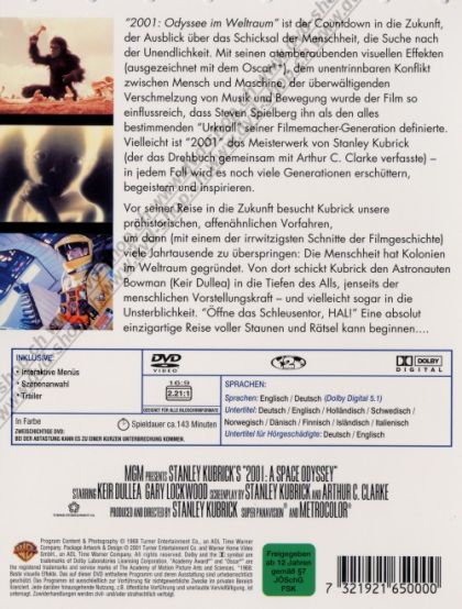 "2001: Odyssee im Weltraum" ist der Countdown in die Zukunft, der Ausblick über das Schicksal der Menschheit, die Suche nach der Unendlichkeit. Mit seinen atemberaubenden visuellen Effekten (ausgezeichnet mit dem Oscar®*), dem unentrinnbaren Konflikt zwischen Mensch und Maschine, der überwältigenden Verschmelzung von Musik und Bewegung wurde der Film so einflussreich, dass Steven Spielberg ihn als den alles bestimmenden "Urknall" seiner Filmemacher-Generation definierte. Vielleicht ist "2001" das Meisterwerk von Stanley Kubrick (der das Drehbuch gemeinsam mit Arthur C. Clarke verfasste) - in jedem Fall wird es noch viele Generationen erschüttern, begeistern und inspirieren. Vor seiner Reise in die Zukunft besucht Kubrick unsere prähistorischen, affenähnlichen Vorfahren, um dann (mit einem der irrwitzigsten Schnitte der Filmgeschichte) viele Jahrtausende zu überspringen: Die Menschheit hat Kolonien im Weltraum gegründet. Von dort schickt Kubrick den Astronauten Bowman (Keir Dullea) in die Tiefen des Alls, jenseits der menschlichen Vorstellungskraft - und vielleicht sogar in die Unsterblichkeit. "Öffne das Schleusentor, HAL!" Eine absolut einzigartige Reise voller Staunen und Rätsel kann beginnen...*1968: Beste visuelle Effekte
