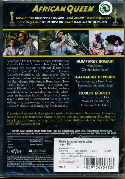 Kriegsjahr 1914: Der raubeinige, verwahrloste Kapitän Charlie Allnutt (Humphrey Bogart) versorgt mit seinem veralteten Dampfboot "African Queen" Dörfer an den Flüssen Deutsch-Ostafrikas. Als eines dieser Dörfer von deutschen Soldaten zerstört wird, nimmt er die überlebende Missionarin Rose Sayer (Katharine Hepburn) an Bord. Es beginnt eine rasante Flussfahrt, auf der die beiden, verfolgt von deutschen Kanonenbooten, viele Abenteuer zu bestehen haben. Unter den dramatischen Umständen überwinden sie sogar ihre anfängliche, gegenseitige Abneigung und entdecken Gefühle der Zuneigung füreinander ...