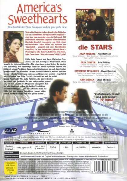 Verkrachte Hauptdarsteller, eifersüchtige Liebhaber und ein vollkommen durchgeknallter Regisseur - eben das ganz normale Leben in Hollywood. Mit bitterbösen, ironischen Gags und einem brillanten Darsteller-Quartett inszenierte Joe Roth einen real-satirischen Blick hinter die Kulissen der Traumfabrik - gespickt mit einer hinreißenden Love-Story. In den Hauptrollen glänzen Oscar®-Preisträgerin Julia Roberts, Catherine Zeta-Jones, John Cusack und "King of Comedy" Billy Crystal!Eddie (John Cusack) und Gwen (Catherine Zeta-Jones) sind das Traumpaar Hollywoods. Doch jenseits der Leinwand hängt ihre Ehe schon lange in den Seilen: Die launige Diva beschäftigt sich neuerdings lieber mit einem lispelnden Spanier und Eddie mit seinem Psychiater. Ausgerechnet jetzt müssen sie noch ihren letzen gemeinsamen Film promoten. Um den schönen Schein zu wahren, soll eine herzzerreißende Versöhnung mediengerecht inszeniert werden - eingefädelt von PR-Zyniker Lee (Billy Crystal). Unterstützen soll ihn dabei Gwens Assistentin Kiki (Julia Roberts), die ganz nebenbei auch noch ihre Schwester ist, und einigermaßen gelernt hat, mit den Launen des Megastars umzugehen. Kiki hat alle Hände voll zu tun, die beiden Streithähne zusammenzubringen - und die Tatsache, dass sie Eddie bei der ganzen Geschichte immer näher kommt, macht die Sache auch nicht gerade leichter ...