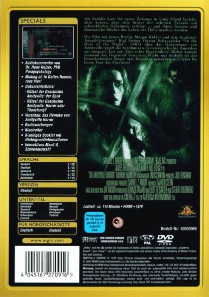 Als Familie Lutz ihr neues Zuhause in Long Island bezieht, ahnt keiner, dass sich hinter der schönen Fassade ein schreckliches Geheimnis verbirgt ... und ihnen finstere und dämonische Mächte das Leben zur Hölle machen werden.Der Film mit James Brolin, Margot Kidder und dem Academy-Award-Gewinner® Rod Steiger (bester Schauspieler "In the Heat of the Night", 1967) über das Horrorhaus von Amityville greift die berühmteste Geistergeschichte Amerikas aus jüngerer Zeit auf. Eine echte Begebenheit? Bisher konnte niemand das Gegenteil beweisen. Nicht nur deshalb ist der Gruselschocker längst zum Klassiker geworden und lehrt bis heute Fans das Fürchten!