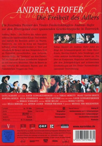 Andreas Hofer - Die Freiheit des Adlers spielt während der Zeit der napoleonischen Kriege. Tirol nördlich und südlich des Brenners gehört zu Bayern. Österreich, das sich im Krieg mit Napoleon befindet, schürt Unzufriedenheit in Tirol und veranlasst die Bauern mit dem Versprechen, Tirol an Österreich anzuschließen, zum Aufstand. Andreas Hofer, der "Sandwirt" aus dem Passeiertal, ein Mann mit hohem moralischen Anspruch an sich und seine Mitstreiter, führt die Bauern an und vertreibt die verhassten Bayern und die Franzosen aus Tirol.
